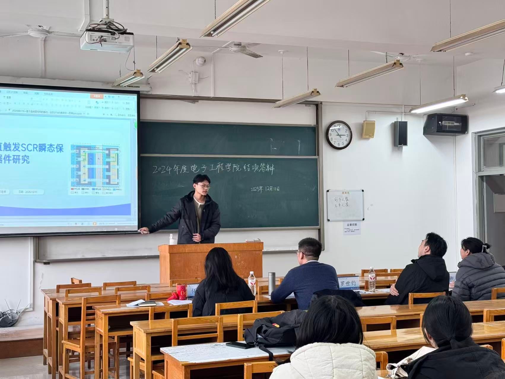 为全面检验2024年度大学生创新创业训练计划项目实施成效,2025年12月11日下午,电子工程学院举办了2024年度校级大创项目验收答辩会。