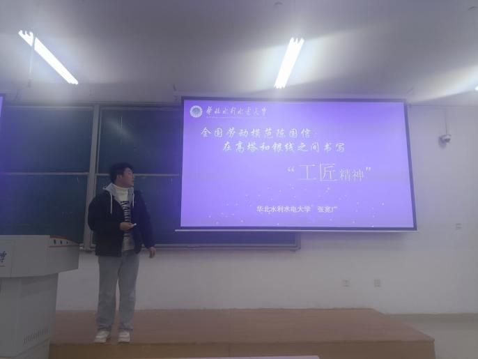 劳动谱写时代华章,奋斗创造美好未来”,自古以来,劳模精神不仅体现了人们勤劳、坚韧的品质,更是推动社会文明不断前行的强大动力。为使同学们进一步了解并弘扬劳 模精神,电子工程学院于2025年3月17日晚上在5202教室开展了“以全国劳动模范陈国信,在高塔和银线之间书写工匠精神”主题团课,本次团课由学院辅导员张宽广主讲。