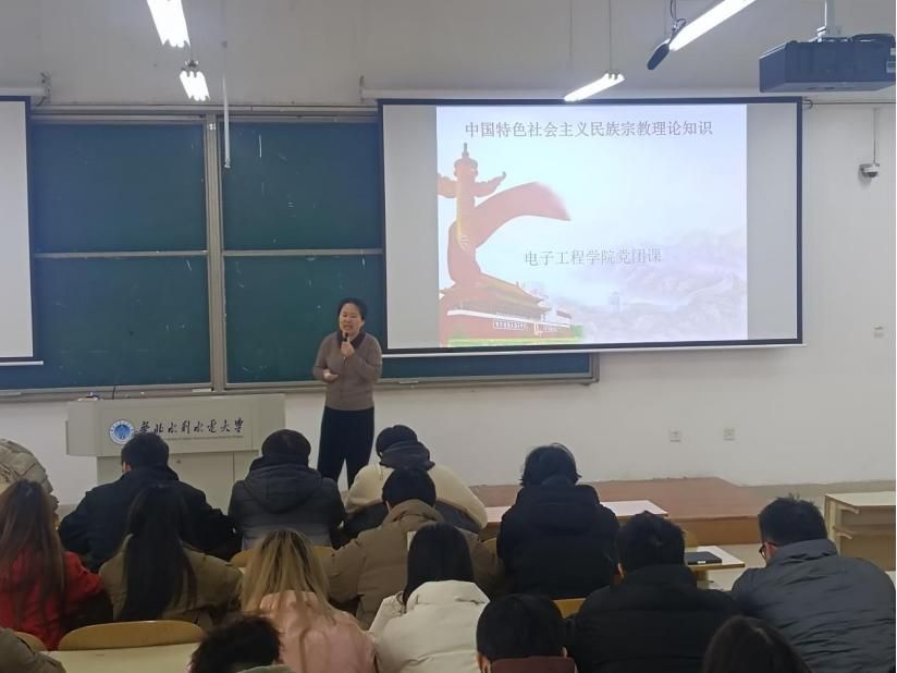 为进一步引导广大青年学生树立正确的民族观、宗教观,增强学生对民族宗教知识的了解,电子工程学院于2025年4月10日在龙子湖校区5202教室开展了“中国特色社会主义民族宗教理论知识”主题团课。本次团课由2023级辅导员吴紫君主讲,各年级学生骨干与代表参与本次团课。