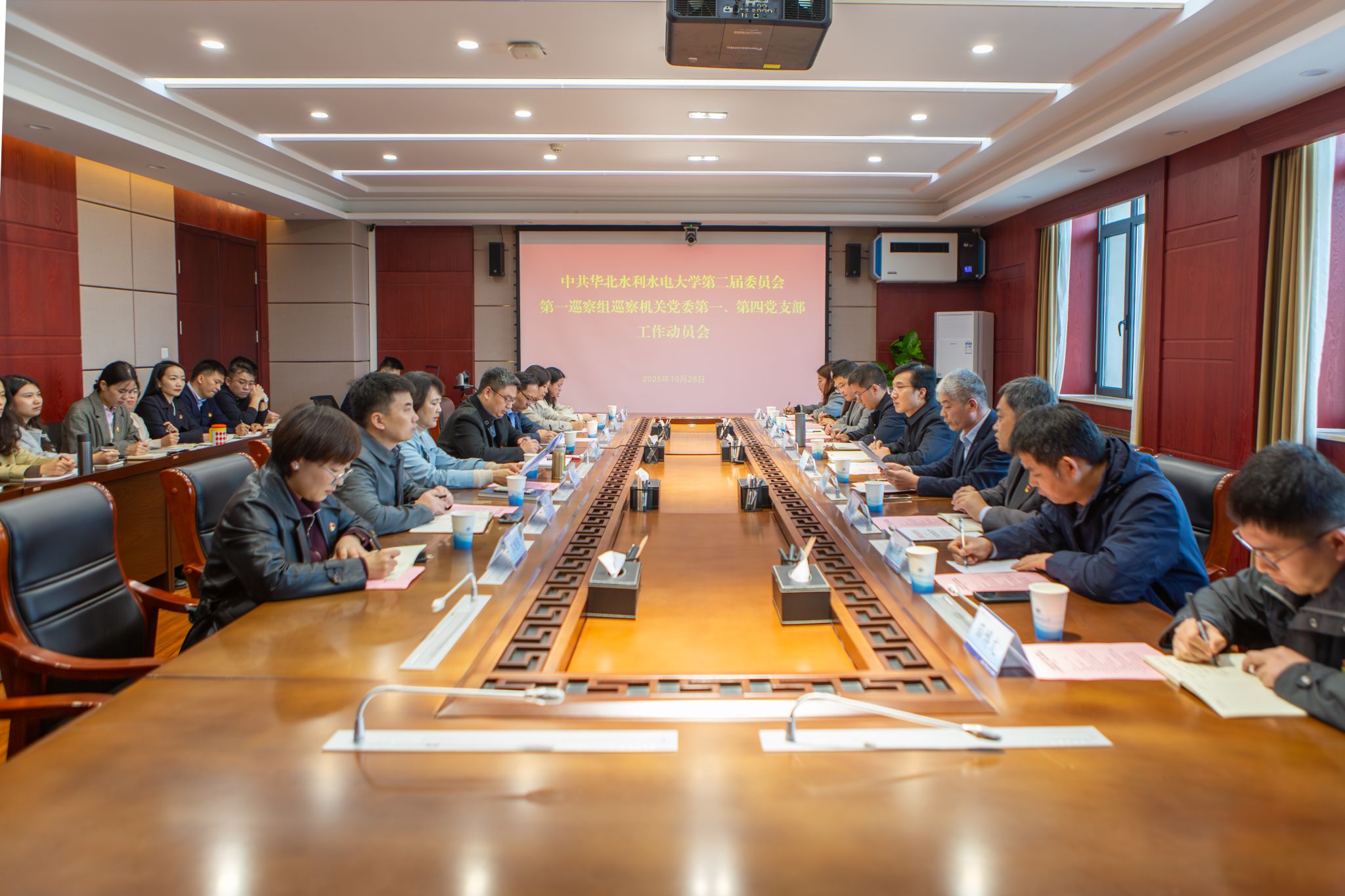 根据学校党委巡察工作统一部署,10月28日下午,中共华北水利水电大学第二届委员会第一轮巡察第一巡察组巡察机关党委第一、第四党支部工作动员会在龙子湖校区行政楼第一会议室举行。党委巡察工作领导小组成员、第一巡察组全体成员,巡察办工作人员,机关党委第一、第四党支部全体成员参加动员会。会议由第四党支部书记毕雪燕同志主持。