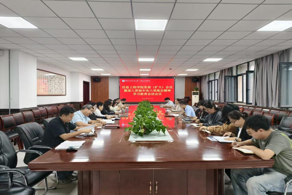 9月18日下午,信息工程学院党委于中栋501会议室召开党委(扩大)会议暨深入贯彻中央八项规定精神学习教育总结会议。全体党委委员、党支部书记、部门主任参会,学院党委书记李秀芹主持会议。
