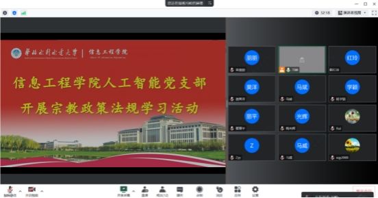 为深入学习贯彻习近平新时代中国特色社会主义思想和党的宗教工作基本方针,提升党员宗教政策理论素养,9月15日,信息工程学院人工智能党支部开展宗教政策法规专题学习活动,支部全体党员参加。