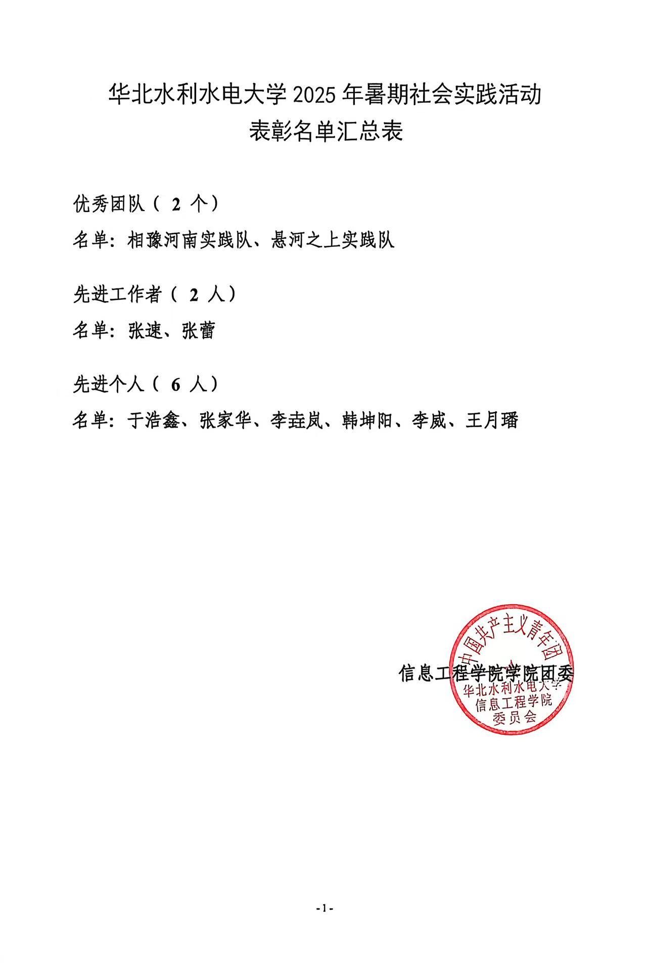 华北水利水电大学2025年暑期社会实践活动表彰名单汇总表