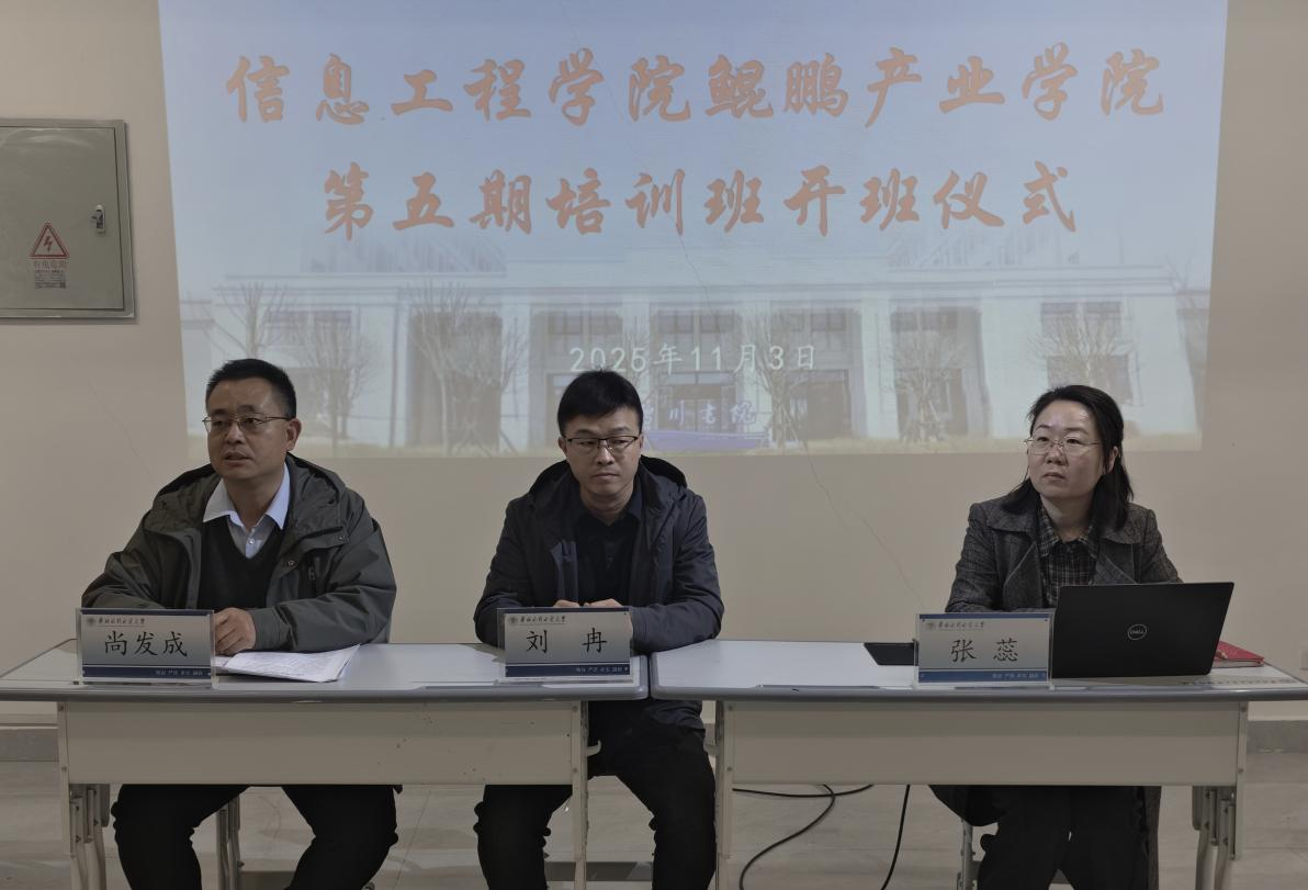 2025年11月3日,信息工程学院鲲鹏产业学院第五期培训班开班仪式在江淮校区智川书院10130报告厅举行。培训聚焦国产新一代鸿蒙操作系统及应用开发技术,把企业最急需的岗位能力搬进课堂,为数智经济发展培育实用型技术人才。信息工程学院党委副书记刘冉、副院长张蕊参加开班仪式,智川书院副院长尚发成担任主持。