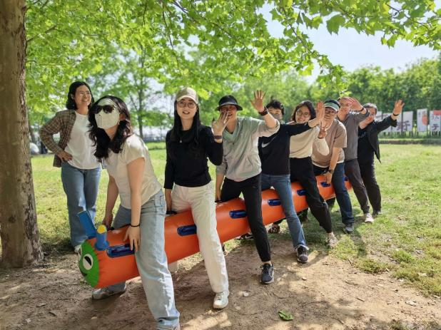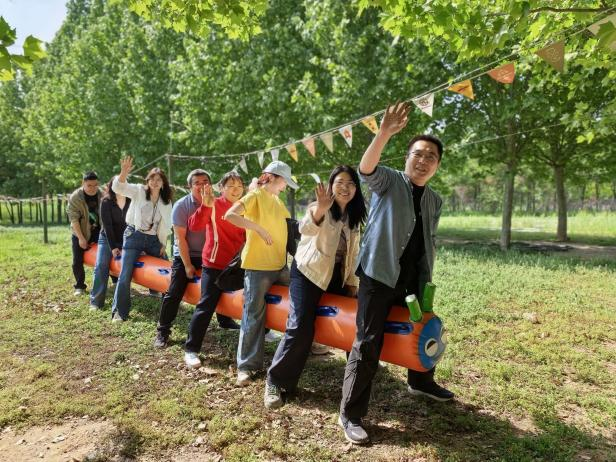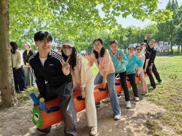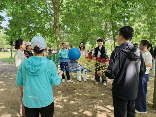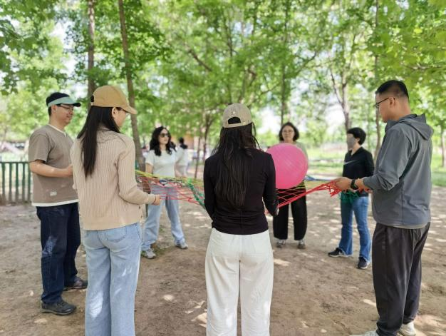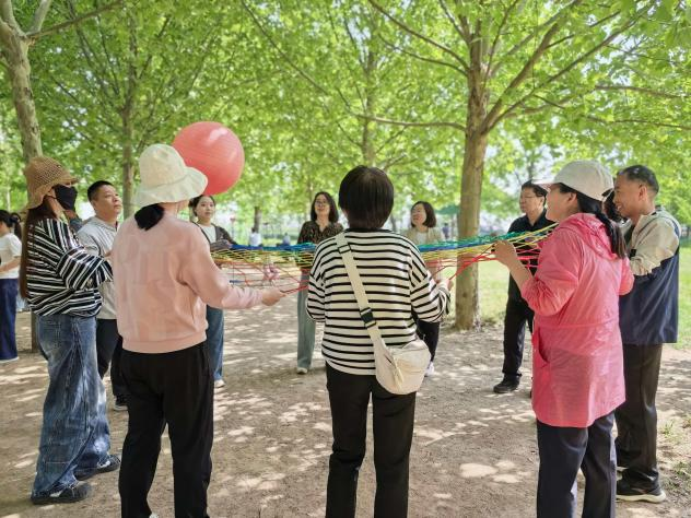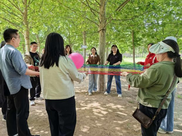 随后的趣味拓展环节气氛热烈、精彩纷呈。在协力垫球项目中,教职工们齐心协力控制垫球的节奏与高度,一次次挑战更高的连续垫球纪录,在默契配合中凝聚了团队力量。在疯狂毛毛虫竞速赛中,教职工们喊着整齐的口号,步调一致地向前冲刺,现场加油声、欢笑声此起彼伏,大家在轻松愉快的竞技中释放了工作压力,增进了彼此的交流与情谊。