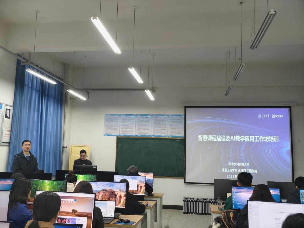 为助力教师掌握AI教学工具,深化人工智能与教育教学融合,11月27日下午,华北水利水电大学信息工程学院联合电子工程学院,在信息工程学院实验中心开展雨课堂AI教学平台培训,信息工程学院马斌副院长、电子工程学院罗文宇副院长主持活动,特邀雨课堂培训讲师刘杰授课,共计90人次教师参与此次培训。