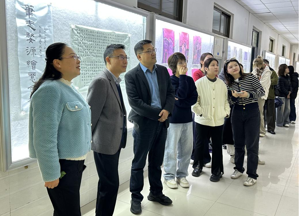 典礼结束后,全体与会者一同参观了学院艺术文化长廊,集中观摩了学院的实践教学与艺术创作成果。