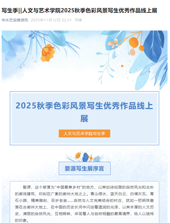 基础渗透模块聚焦文化与技能奠基,开设《中华水文化概论》《黄河水利文化遗产》等通识课程,系统讲解水文化的核心内涵与美学价值;在《设计素描》《色彩构成》等专业基础课中融入水形态、水意境等元素,引导学生从水文化中提取设计灵感,夯实“水+艺术”的创意基础。核心融合模块紧扣专业方向,实现精准对接:视觉传达设计方向开设《中华水文化》《黄河流域非遗保护》,培养水文化传播类设计能力;环境设计方向开设《水文水资源概论》《水利型风景规划设计》,提升水环境治理与文化景观营造能力。实践深化模块打破课堂界限,组织学生深入水乡古镇、水利遗产地开展实地调研;依托校内水文化艺术设计工作室与校外水利景区、文旅企业实践基地,开展真实项目设计,推动学生将课程所学转化为实践成果。同时,引入跨学科教学内容,联合水利工程、环境科学等学科教师共同授课,培养学生的跨学科协作能力,全面提升人才培养质量。