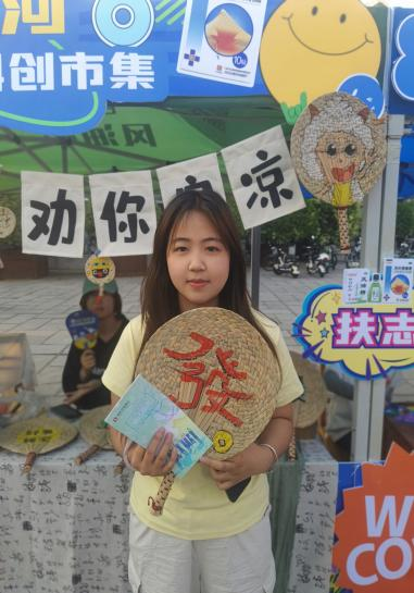 活动现场,摊位陈列着琳琅满目的创意好物,本次活动着力打造四大特色板块,手绘蒲扇摊位,将天然蒲草与个性文字、图案相结合,兼具实用与时尚;手工中药香囊,以精美刺绣搭配艾叶、薄荷等中药材,驱蚊、安神功效各异,传承中医药文化;3D打印作品涵盖创意摆件、文具和饰品,科技与艺术完美融合,且所有商品定价亲民,契合大学生消费能力。资助政策宣传摊位,将资助知识宣传通过图文展板、宣传手册与案例讲解,呈现国家助学贷款、勤工助学、助学金等政策体系,使学生更加了解资助政策。