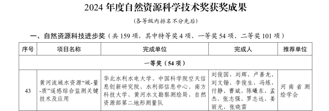 近日自然资源部正式发布了“自然资源部关于2024年度自然资源科学技术奖获奖成果的公告”公布了2024年度自然资源科学技术奖获奖名单