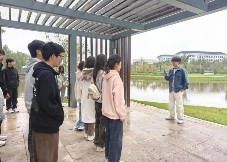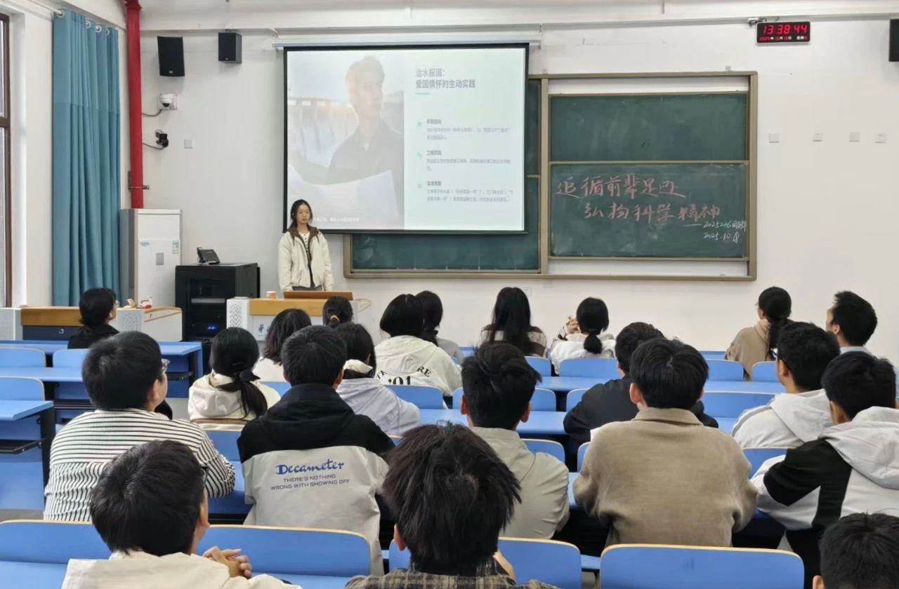 2025216班组织开展了团日活动,以“户外沉浸式学习+主题分享”形式,在校园湖畔凉亭开展,完成了汪胡桢事迹分享、科学精神主题演讲、跨学科研讨等环节。活动将“自然氛围”与“精神传承”结合,打破传统室内团日的严肃感,让“追循前辈足迹”不再是口号。当光电专业的思维与水利前辈的精神碰撞,“青春报国”有了更具体的认识。