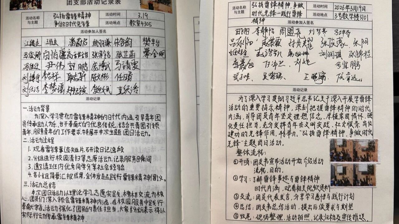 为贯彻“践行雷锋精神,争做时代先锋”主题,各团支部积极探索创新,“使命盲盒”、实践体验、知识快问快答等多样形式,引导团员青年深刻领悟雷锋精神的核心内涵——它既是无私奉献的生动写照,其光芒不仅辉映在历史长河,更需要一代代青年接力传承。“使命盲盒”阶段有同学说:“为他人服务感觉到了被需要”。从主题团日中的思想共鸣,到平凡日常中的主动担当与奉献,雷锋精神的传承需要青春接力,时代新风的弘扬离不开青年先行。