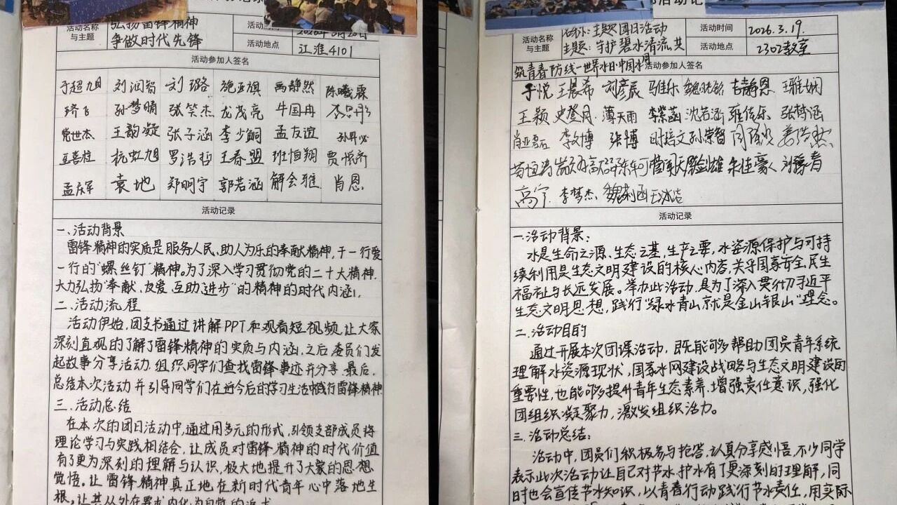 为深入学习贯彻习近平总书记关于青年工作的重要思想,紧扣生态文明建设、精神文明培育与时政思想引领主题,智川书院团委组织各团支部围绕“守护碧水清流,共筑青春防线”、“践行雷锋精神,争做时代先锋”、“学习两会精神,凝聚青春力量”三大主题开展本月团日活动。以科普实践、手工制作、现场游戏等多元形式,引导团员青年厚植生态环保意识、传承奉献担当精神、深学细悟两会精神,在知行合一中坚定理想信念、彰显青春作为。
