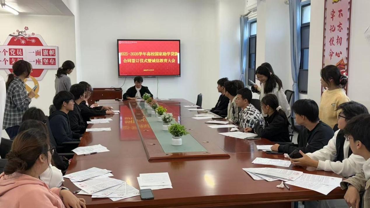 为进一步强化贷款学生的诚信意识,督促其依法依规履行还款义务,保障学校国家助学贷款工作规范、健康推进,切实助力家庭经济困难学生顺利完成学业,11月5日中午,智川书院隆重举行“2025-2026学年高校国家助学贷款合同签订仪式暨诚信教育大会”。2025年国家助学贷款申请学生全员参会,书院资助秘书、“智梦启航”资助育人工作室指导老师王相成担任主持。