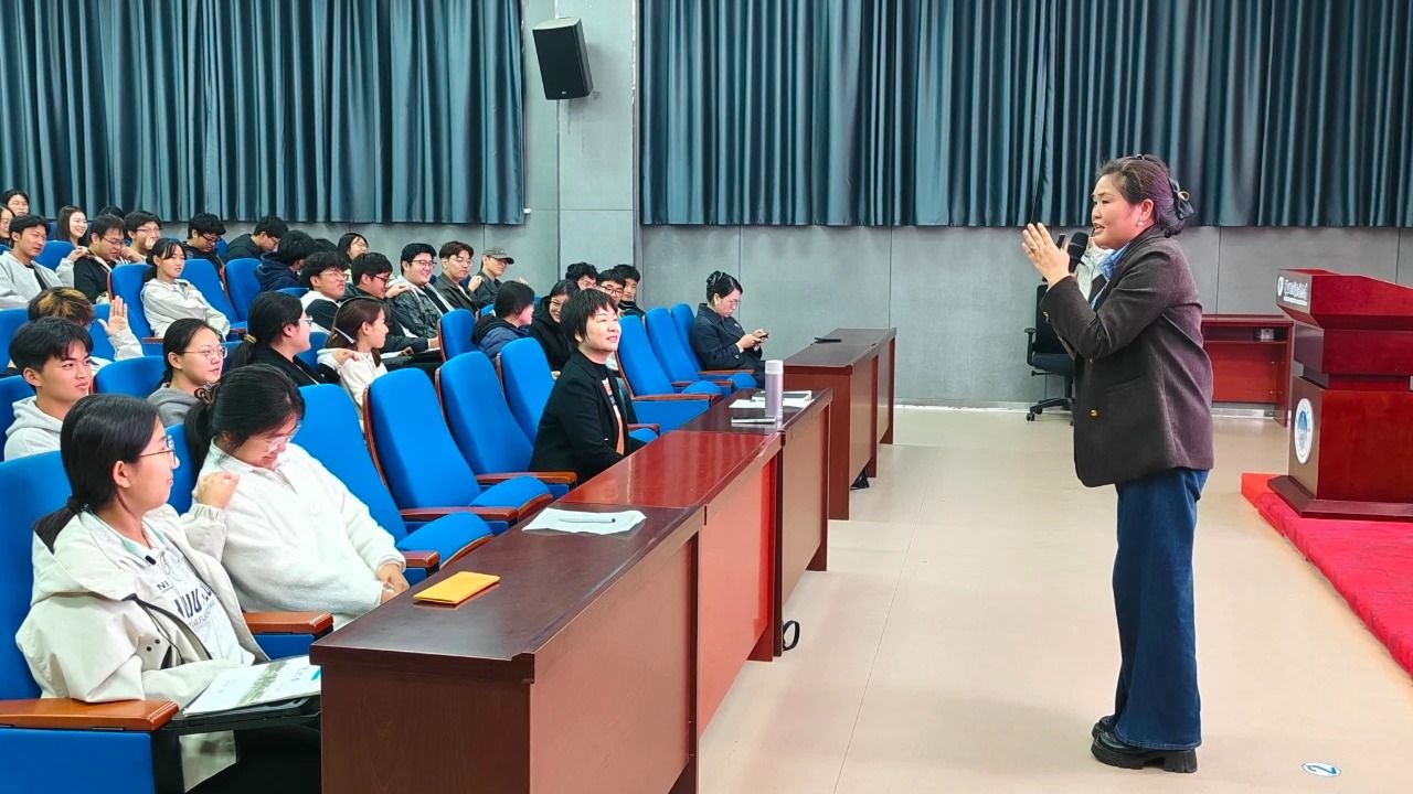 本次讲座以专业引领、实践赋能为核心,分两大环节,兼具理论深度与落地价值。一、专业分享-心理赋能筑成长根基。拥有30余年一线教学经验、累计2000多小时心理咨询时长的衡玉琴衡玉琴围绕《以健康为保障,奔向美好人生》主题,通过“灵魂三问”层层引导,结合榜样案例与实用视频,重点向同学们传授压力管理、情绪调节的方法;绘画心理分析师、高级心理咨询师李忆春则围绕《关注心理健康,积极快乐生活》主题,以绘画心理学为切入点,通过同学们现场绘画细节解析帮助大家觉察内心,教授同学们如何运用心理学提升自己。二、互动答疑-精准解惑强心理支撑。同学们踊跃倾诉学习生活中的心理困惑,专家结合心理学常识、乔哈里资讯窗等理论精准回应,详细解读校园心理支持资源与获取渠道,为学生破解心理难题。两位教师结合丰富的案例展开讲解和互动,增强了针对性和说服力,同学们通过讲座不仅了解到情绪调节和认识、提升自己的实用方法,还明晰了校园心理支持渠道,为应对各类心理挑战筑牢后盾,实现心理素养与自我成长的双重提升。