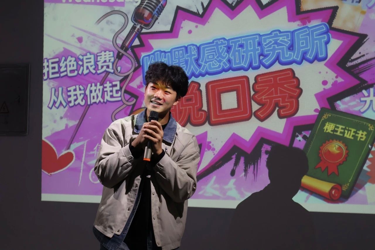 为打破“节约”主题的刻板传播模式,让反浪费理念以更年轻化、趣味化的方式融入校园生活,11月9日,智川书院脱口秀社团“幽默感研究所”在10130多功能报告厅成功举办“因式分解反浪费,人生百态乐生活”主题脱口秀大赛。活动以幽默为载体,活动以幽默为载体,将真实校园场景与节约理念深度融合,现场氛围轻松热烈。