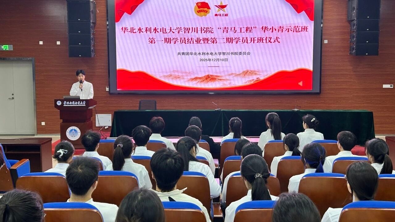为深入学习贯彻党的二十大和二十届四中全会精神,扎实落实习近平总书记关于青年工作的重要思想,着力培养信念坚定、作风过硬、本领高强的青年马克思主义者与学生骨干,12月10日,智川书院“青马工程”华小青示范班第一期学员结业暨第二期学员开班仪式在第一报告厅隆重举行。书院团委老师赵静、第一期全体结业学员及第二期新学员到场参与,仪式由智川书院学生团委副书记崔峻硕主持。