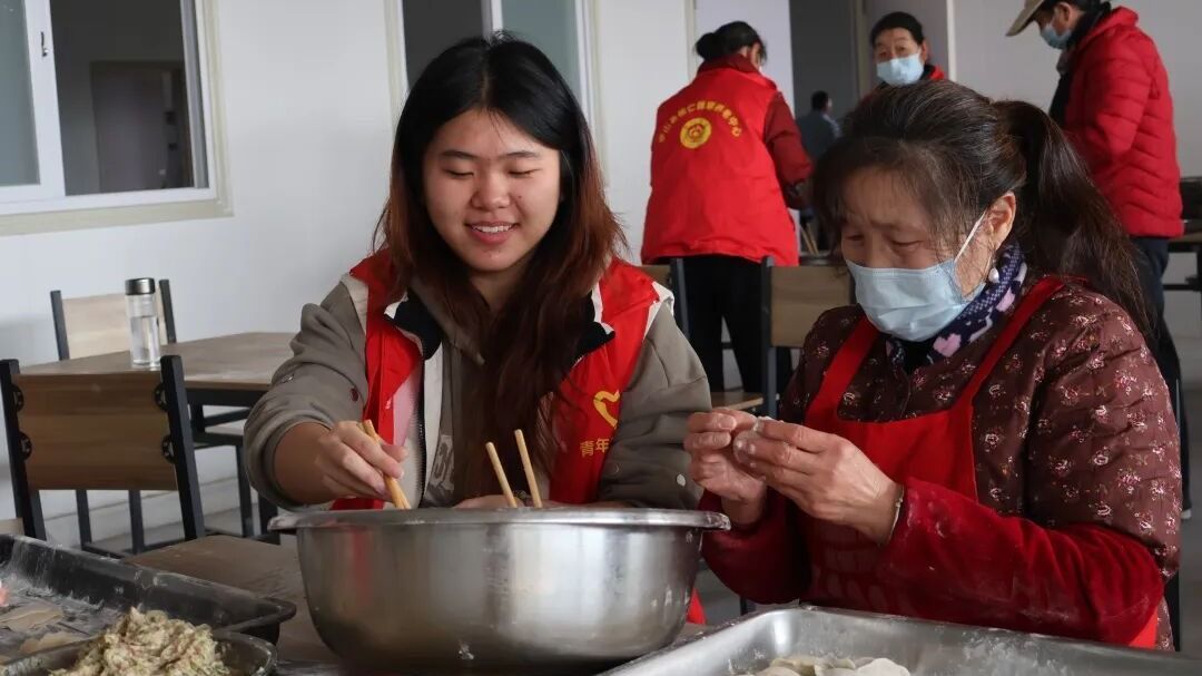 当香气四溢的饺子出锅时,师生与老人们围坐一堂,共享劳动成果。大家举箸言欢,现场洋溢着家的温馨与幸福。同学们还主动为老人添饭、聊天,倾听他们讲述往昔故事,感受那份历久弥新的温情。
