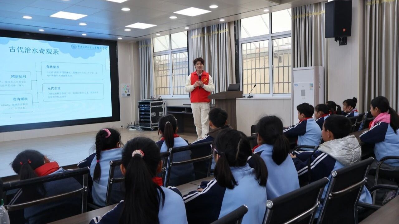 在第三十四届“世界水日”、第三十九届“中国水周”来临之际,为普及水利知识、传播节水护水理念,智川书院党委副书记魏华带领导师管理办公室主任张帅、团学工作办公室副主任赵静、育人导师王琰琰与青年志愿者走进回民小学开展“水润童心,智启未来——水利科普进校园,守护成长伴我行”主题活动,以趣味科普为载体,将水利知识的种子播撒在孩子们心中,让节水护水的意识扎根校园。