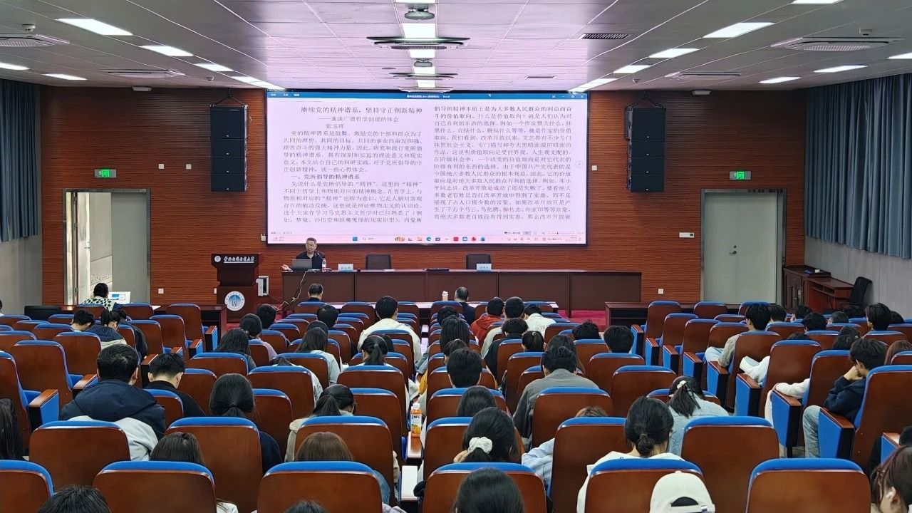 讲座紧扣主题、内容详实。张玉祥从五大核心维度展开系统阐释,为师生带来一场兼具理论深度与实践温度的学术盛宴。第一、党所倡导的精神谱系。张玉祥从“精神”的内涵切入,指出党所倡导的精神,本质上是为最广大人民群众利益而奋斗的价值取向。无论是井冈山精神、长征精神、抗战精神,还是雷锋精神、焦裕禄精神、“两弹一星”精神、载人航天精神、探月精神等,虽然形成于不同历史时期,但其背后始终贯穿着为人民利益而奋斗的根本价值追求。第二、解读守正创新精神。张玉祥指出,守正创新在一定意义上是中国共产党领导中国人民进行革命和建设的总精神。“守正”就是坚持马克思主义基本原理,“创新”就是立足中国实际、走适合中国国情的发展道路。他结合“农村包围城市”的革命道路、中国特色社会主义建设道路等具体案例,阐释了守正与创新的统一关系,并指出“守正创新”已成为新时代中国特色社会主义事业发展的重要精神标识。第三、广谱哲学的守正创新。张玉祥结合自身长期学术研究的经历,介绍了广谱哲学在“守正”与“创新”两个方面的探索。在“守正”方面,广谱哲学坚持马克思主义哲学的基本立场、基本观点和基本方法,针对改革开放以来哲学社会科学领域中一些否定辩证法、否定唯物主义基本观点的思潮,运用结构分析方法和广义量化分析方法进行了系统辨析和回应。在“创新”方面,他从传统哲学“道理难以说精确”“方法难以操作”两大问题出发,说明广谱哲学试图推动哲学命题的数学化、精确化和方法程序化,开拓哲学研究的新路径。第四、广谱哲学的探索历程。张玉祥回顾了自己围绕“哲学问题数学化”持续探索的过程。早期曾尝试运用高等数学和系统科学等工具推进相关研究,但采用的数学模型仍是“数量型”的,难以真正解决哲学问题数学化中的关键难题,即哲学命题的普遍性与精确性的矛盾、哲学方法的无程序与程序化的矛盾。直到接触并深入学习吴学谋教授创立的泛系方法论后,才找到兼具普适性与精确性的研究工具,由此逐步推进广谱哲学的创建与发展。总之,广谱哲学的形成既是长期学术积累的结果,也是不断探索适宜研究方法的结果。第五、分享科研创新启示与青年寄语。张玉祥从主观条件和客观条件两个层面,分享了对科研创新的认识。在主观条件方面,他认为科研工作者要具备强烈的创新意识、明确的创新目标和坚韧不拔的毅力;在客观条件方面,则需要宽松的学术环境和相应相称的研究方法。他勉励青年学生在学习和科研中坚持长远目标导向,把个人成长融入有价值的持续奋斗之中。他勉励在场青年学子找准目标、持之以恒,树立长远奋斗的人生理念。