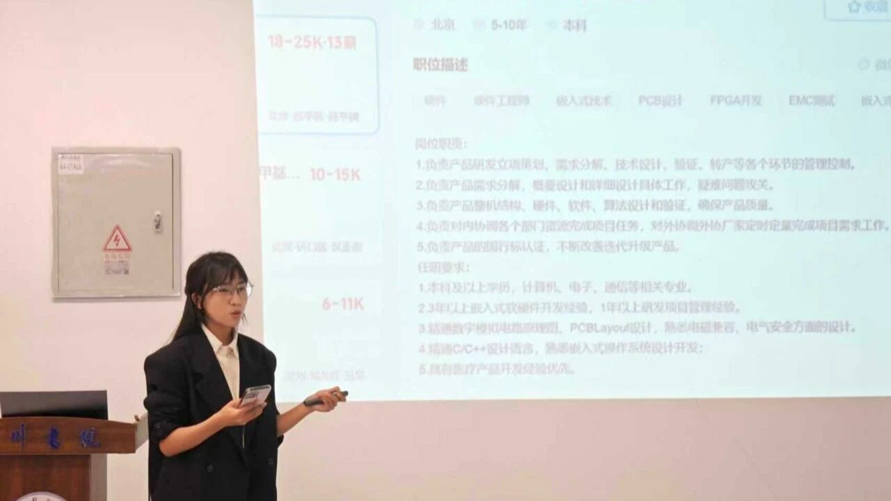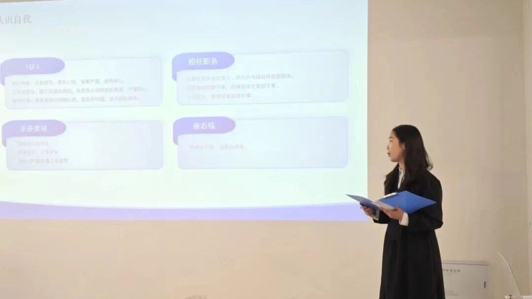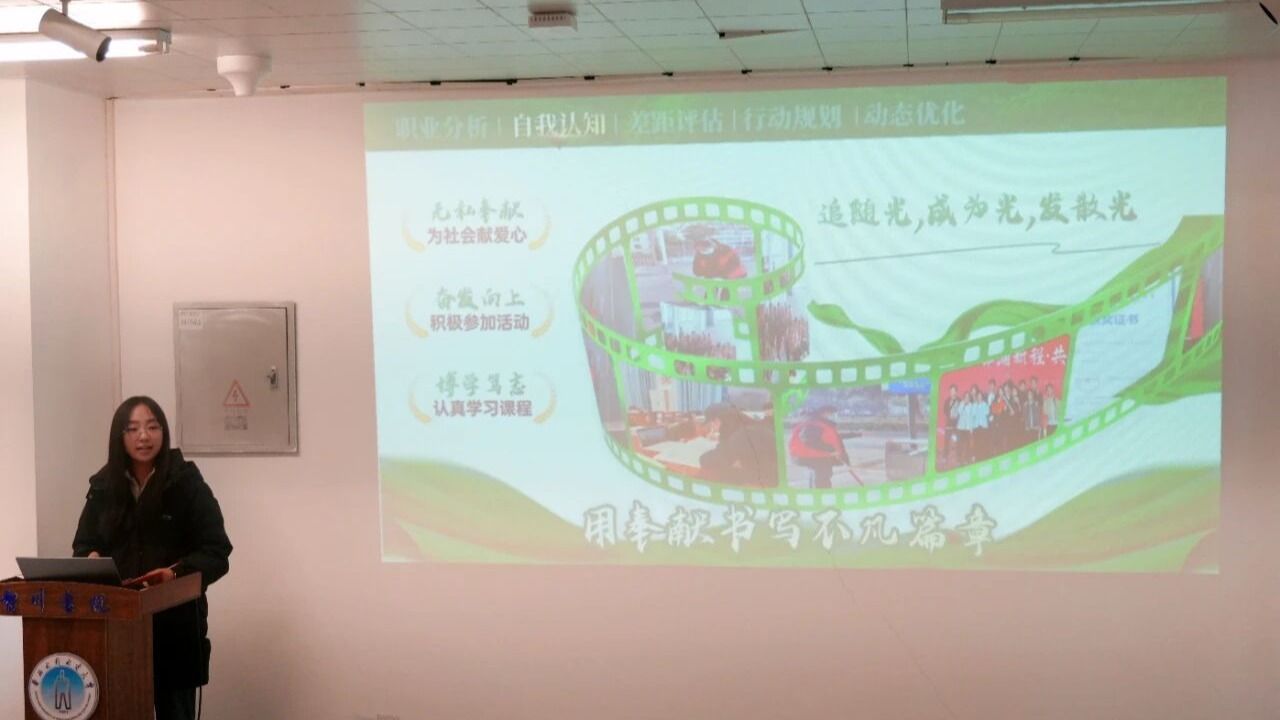 严格的选拔机制为决赛质量筑牢根基。书院以生涯发展报告评审为核心环节开展初赛,组织专业教师从职业目标合理性、成长路径科学性等维度进行匿名评审,层层筛选出综合素质突出的选手晋级决赛。决赛采用“主题陈述+评委提问”模式,选手们借助PPT路演,将职业定位、行业洞察与成长计划生动铺展,字里行间尽显扎实的专业积淀与明晰的职业追求。评审重点关注职业目标与国家战略的契合度、行业趋势分析的深度及成长计划的可行性。