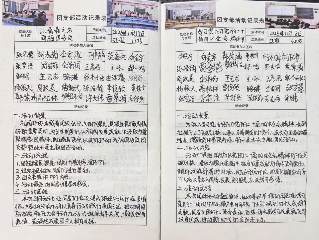 为深入学习贯彻习近平总书记关于青年工作的重要思想,锚定新时代青年工作航向,智川书院团委统筹各团支部开展十一月主题团日活动。以“台湾光复纪念日”“学习贯彻党的二十届四中全会精神”“传承勤俭风尚,共筑节约校园”为三大核心,通过多维实践载体,引导团员青年在铭记历史中厚植家国情怀,在深学细悟中坚定理想信念,在躬身践行中涵养优良品德,以青春之力奔赴中国式现代化建设新征程!
