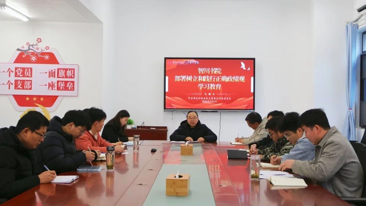 3月5日,智川书院召开树立和践行正确政绩观学习教育动员会。会议深入学习传达校党委关于树立和践行正确政绩观学习教育的实施方案,以及校党委书记王笃波在党建工作领导小组会议上的讲话精神,对书院树立和践行正确政绩观学习教育作出全面安排。书院全体教职工参加会议。