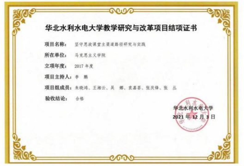 华北水利水电大学教学研究与改革项目:坚守思政课堂主渠道路径研究与实践(2021年)