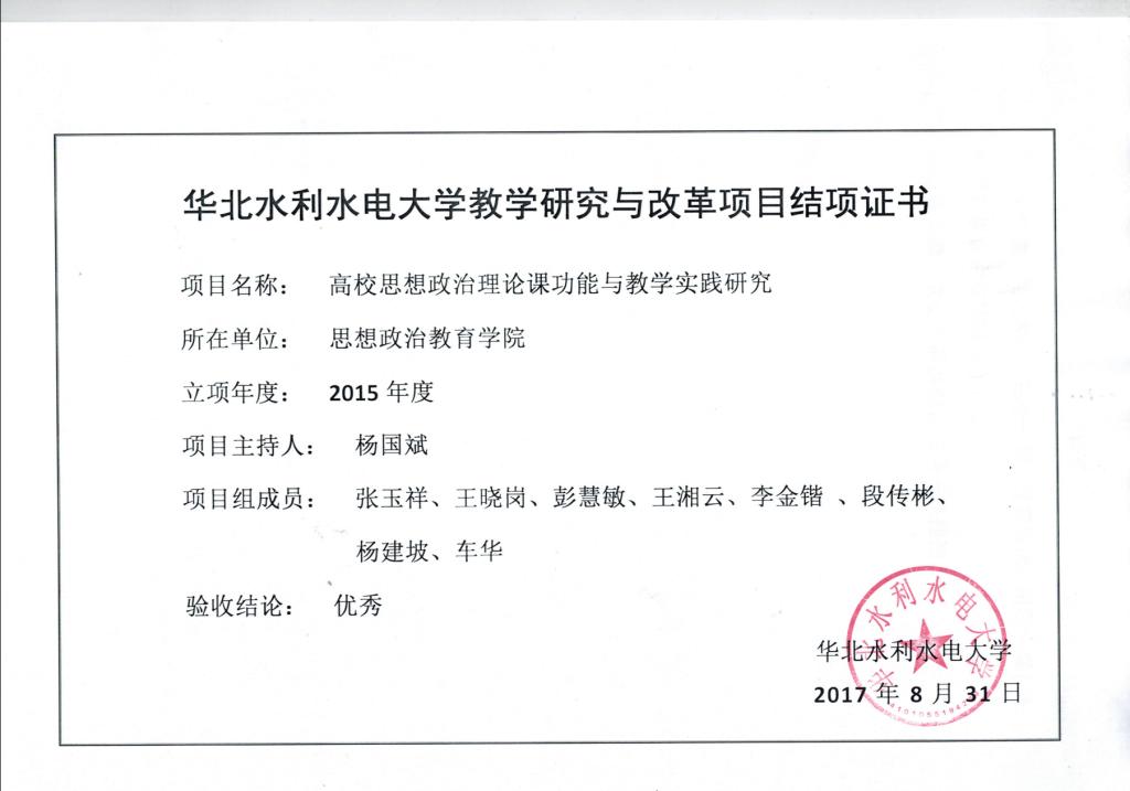 华北水利水电大学教学研究与改革项目:高校思想政治理论课功能与教学实践研究(2017年)