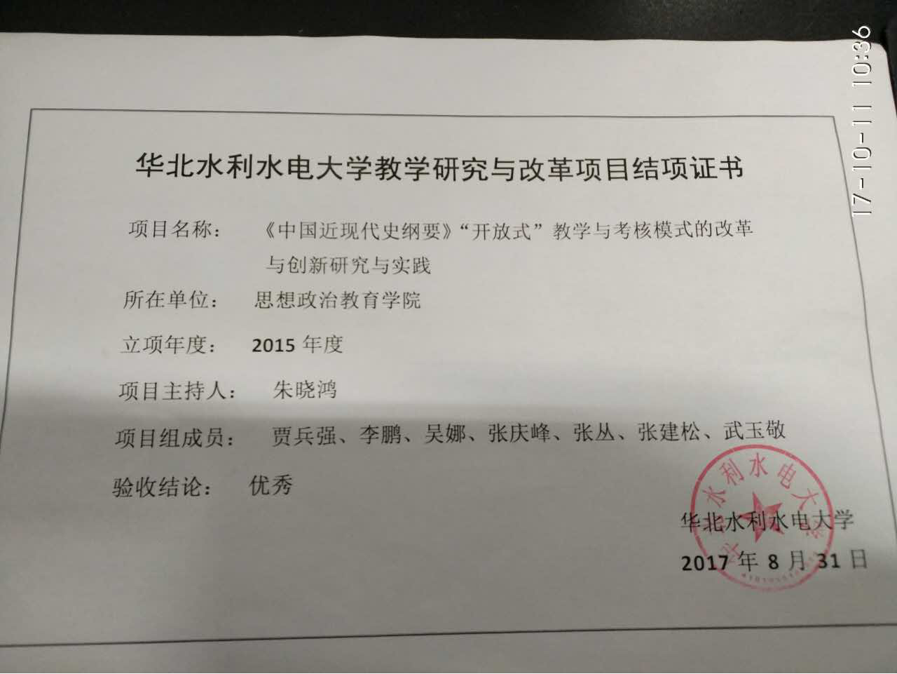 华北水利水电大学教学研究与改革项目:《中国近现代史纲要》‘开放式’教学与考核模式的改革(2017年)