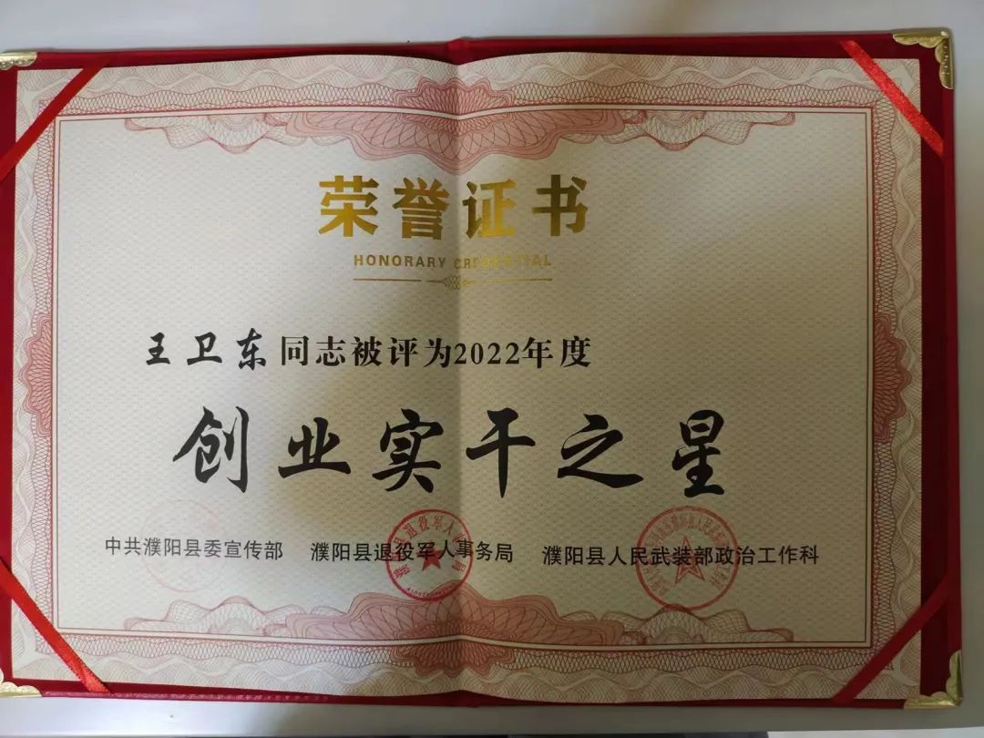 华北水利水电大学毕业生王卫东被评为濮阳县2022年度“创业实干之星”(2022年)